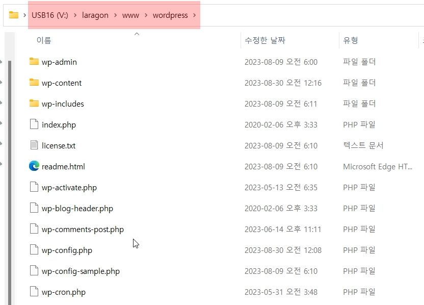 laragon > www > wordpress 에 모든 파일이 위치하게 된다.