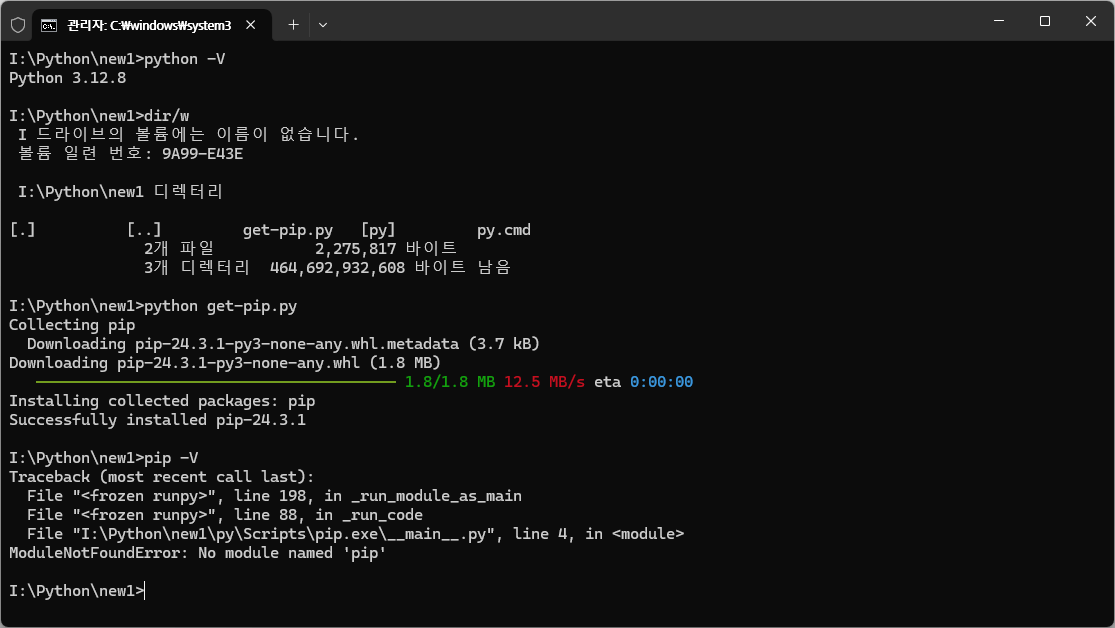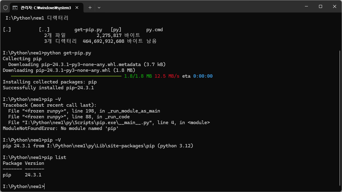 에러가 없다면, pip를 설치한다.