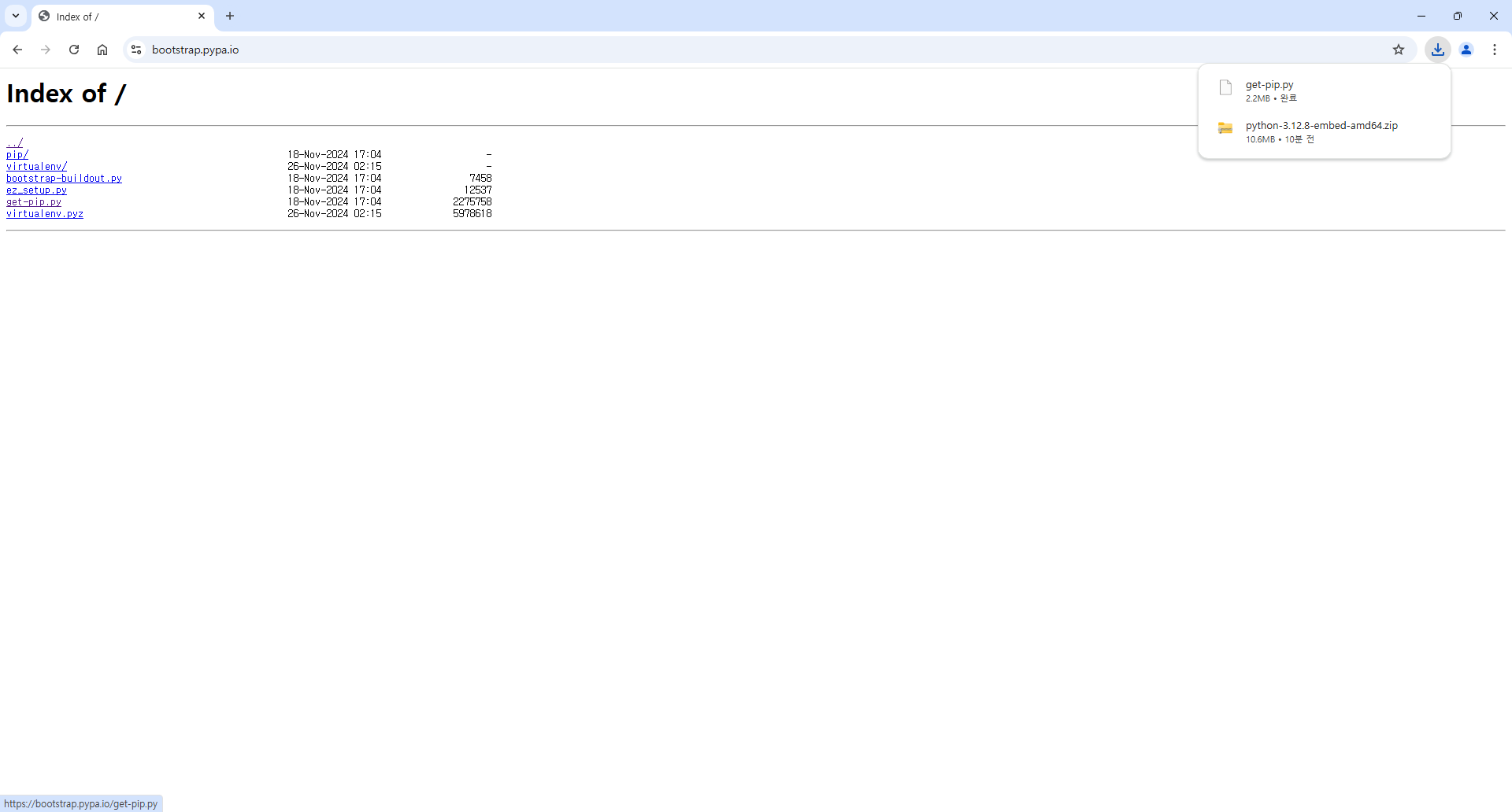 여기서 get-pip.py 파일을 마우스 오른쪽 버튼으로 다운로드 받아 준다.