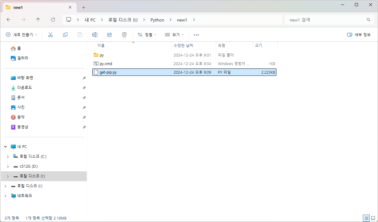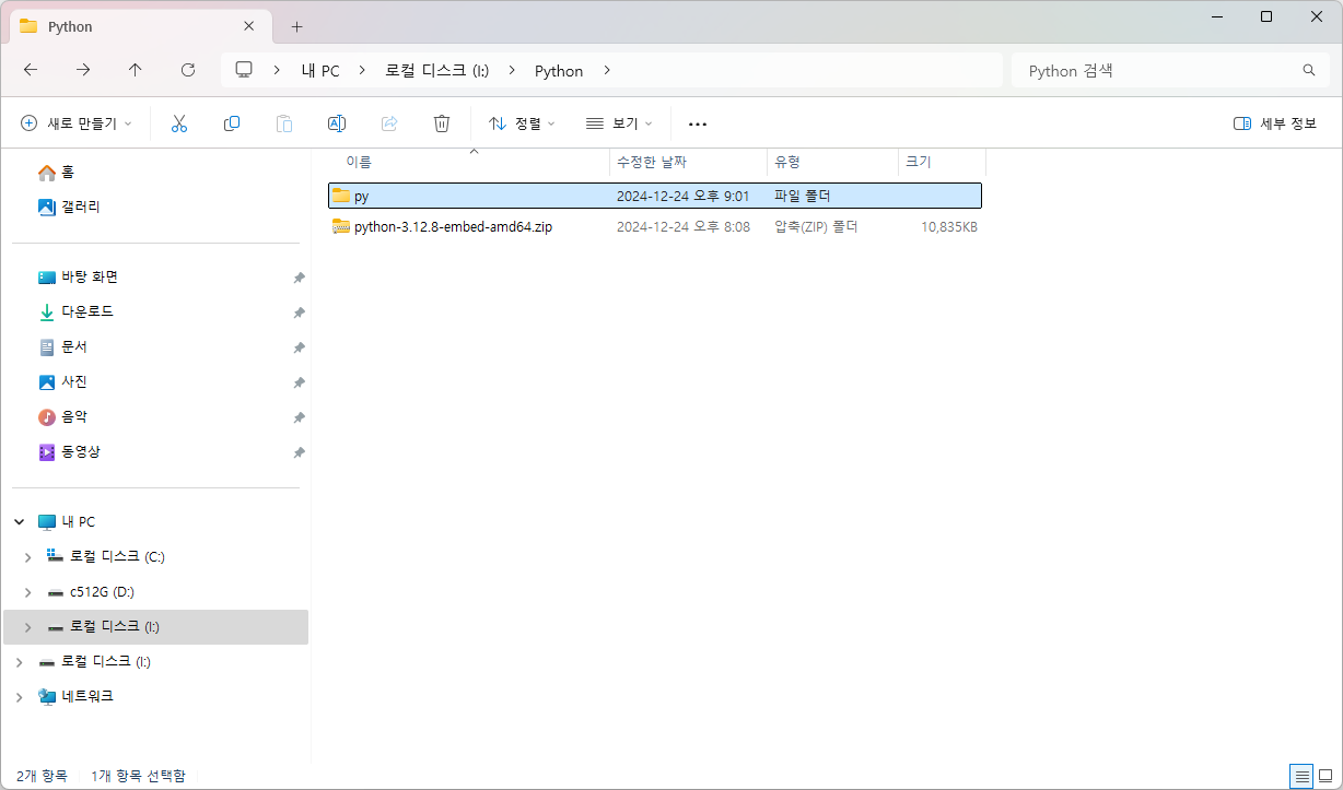 그리고, 폴더명을 단순하게 py 등으로 바꾸어 주자.